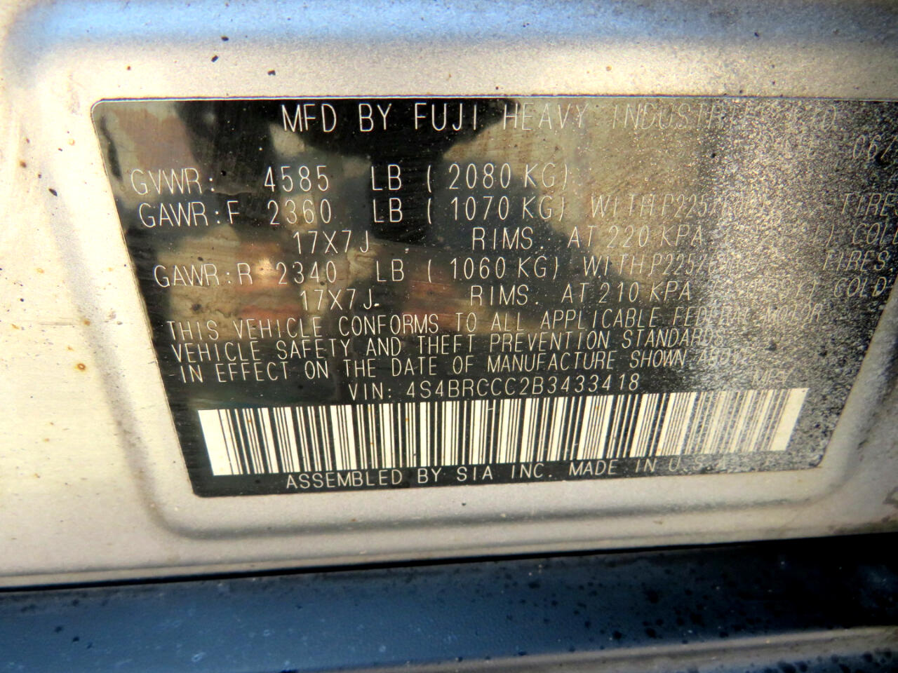 Vehicle Inquiry for 2011 Subaru Outback 2.5i Premium