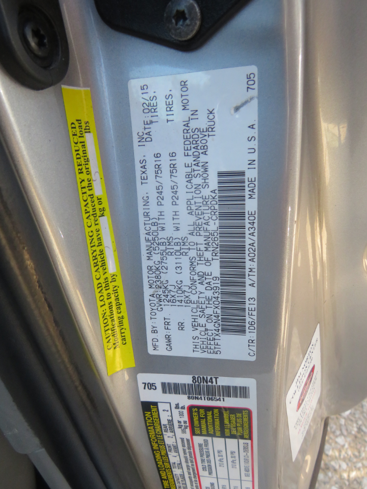 Vehicle Inquiry for 2015 Toyota Tacoma PreRunner Access Cab I4 4AT 2WD