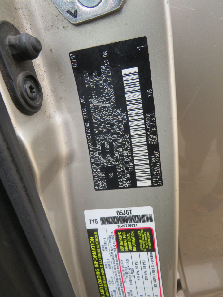 Vehicle Inquiry for 2007 Toyota Tundra SR5 Double Cab 2WD
